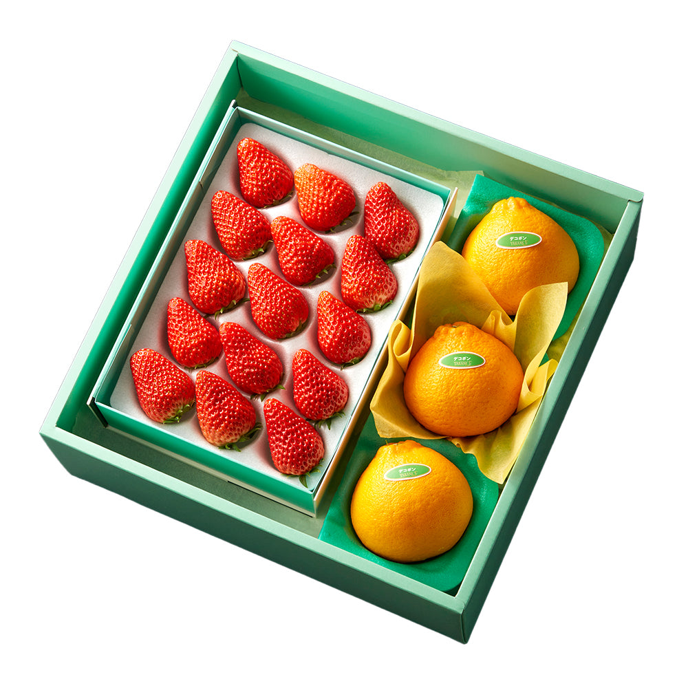| 内容量 | 苺15粒(静岡県、佐賀県、栃木県、熊本県、千葉県、長崎県、福岡県または茨城県産)×1、デコポン(熊本県または佐賀県産)×3 |