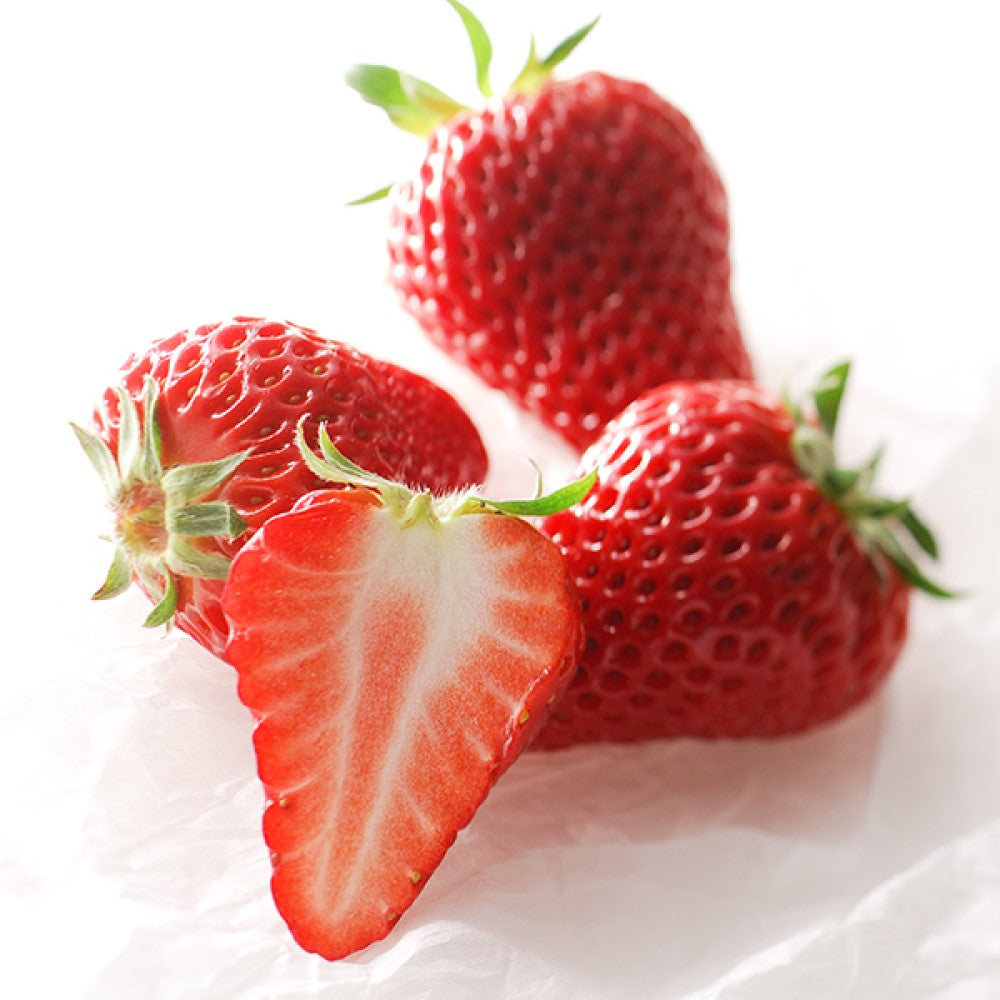 鮮やかな赤色と、形の良い円錐形をした果形の美しい苺。しっかりとした果肉は、甘みと酸味のバランスが絶妙で、コクのある味わいが楽しめます。また、果肉が中まで赤いためカットしても美しい苺です。※商品写真の中で使用されている器や小物類等は、演出用のため商品内容に含まれておりません。