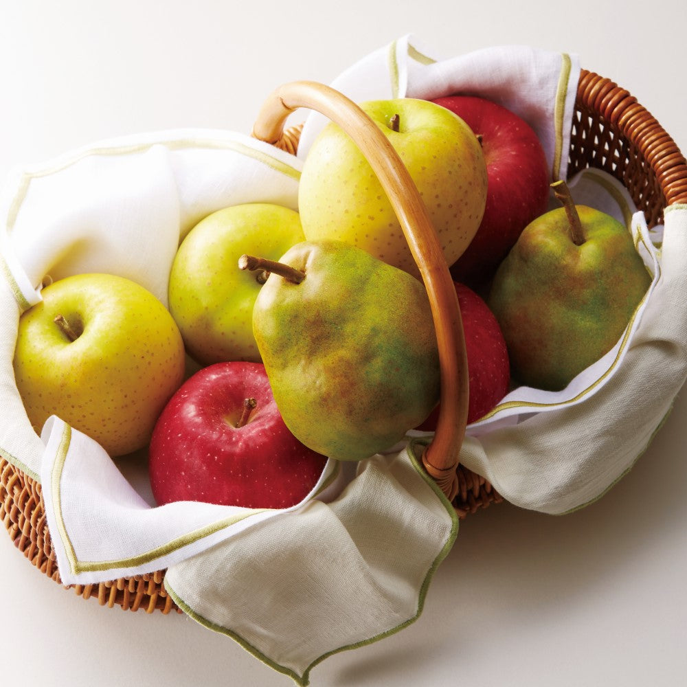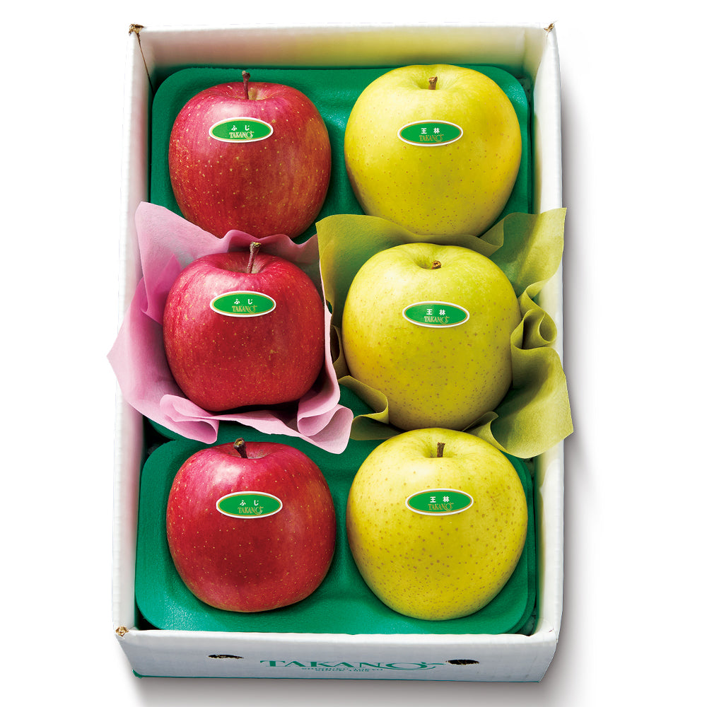 | 内容量 | ふじ(青森県、長野県または山形県産)、王林(青森県または長野県産)×各3 |