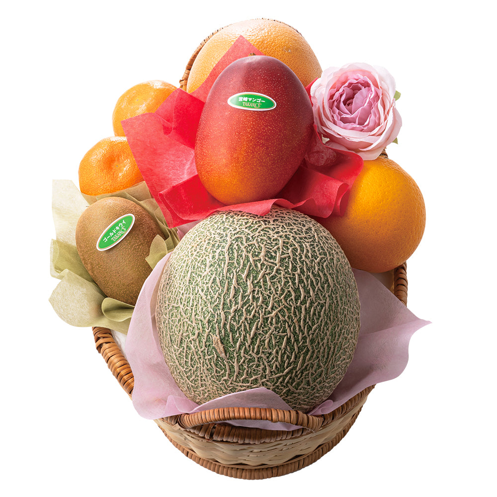 | 内容量 | メロン(熊本県、茨城県または千葉県産)、グレープフルーツ(アメリカ、メキシコまたはトルコ産)、オレンジ(アメリカまたはエジプト産)、サンゴールドキウイ(ニュージーランド産)、宮崎ミ二マンゴー(宮崎県産)×各1、温室栽培みかん(愛知県、佐賀県、愛媛県または大分県産)×2、バラオーナメント×1 |