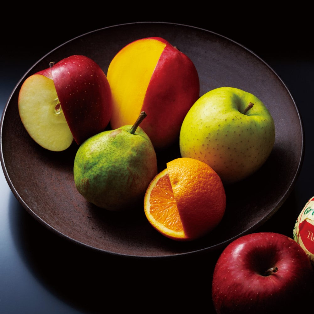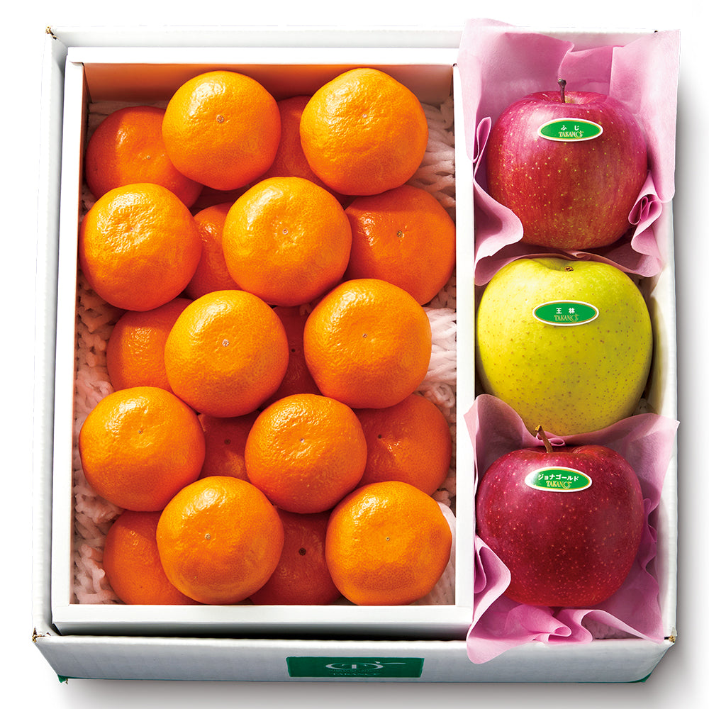 | 内容量 | みかん(愛媛県、和歌山県または熊本県産)×20、ふじ(青森県、長野県または山形県産)、王林(青森県または長野県産)、ジョナゴールド(青森県、岩手県または山形県産)×各1 |