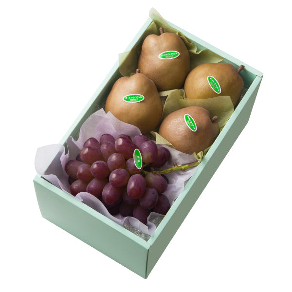 | 内容量 | 紫苑ぶどう(岡山県産)×1、ゴールド ラ・フランス(宮城県または山形県産)×4 |