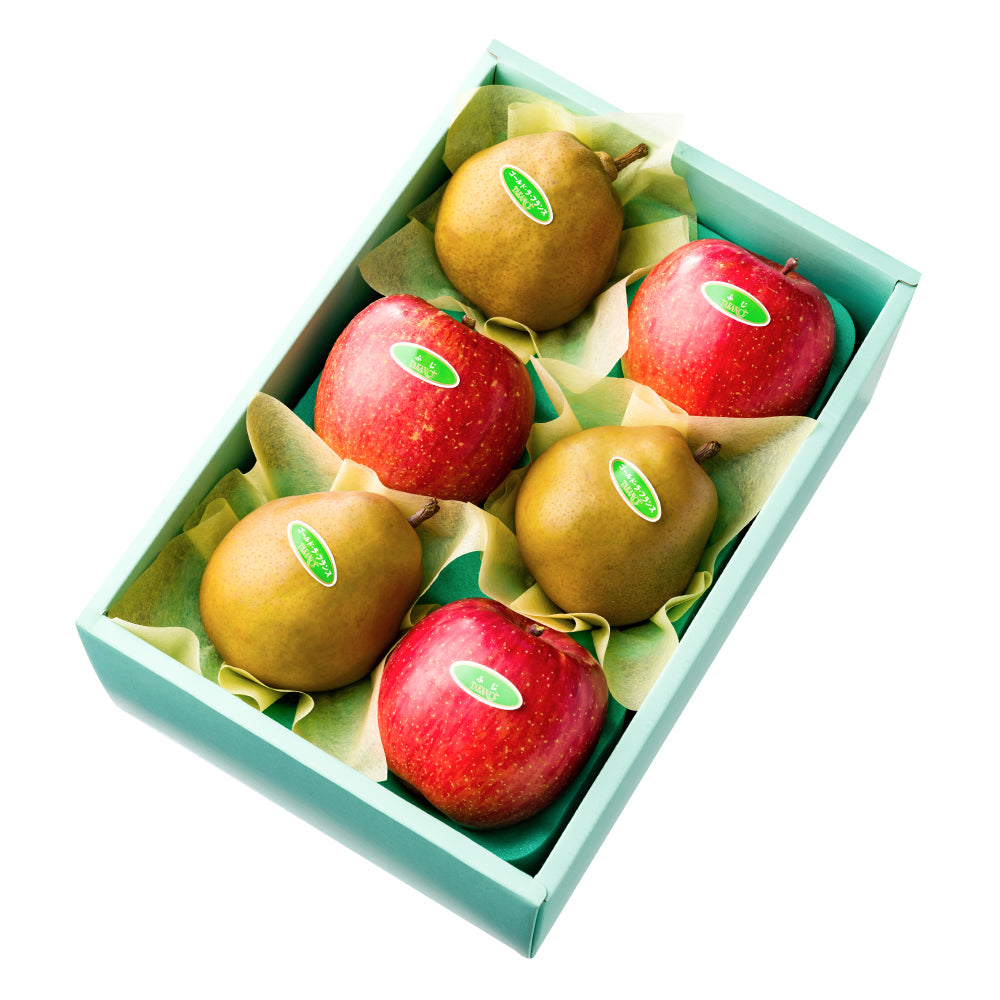 | 内容量 | ゴールド ラ・フランス(宮城県または山形県産)、ふじ(青森県、山形県または長野県産)×各3 |