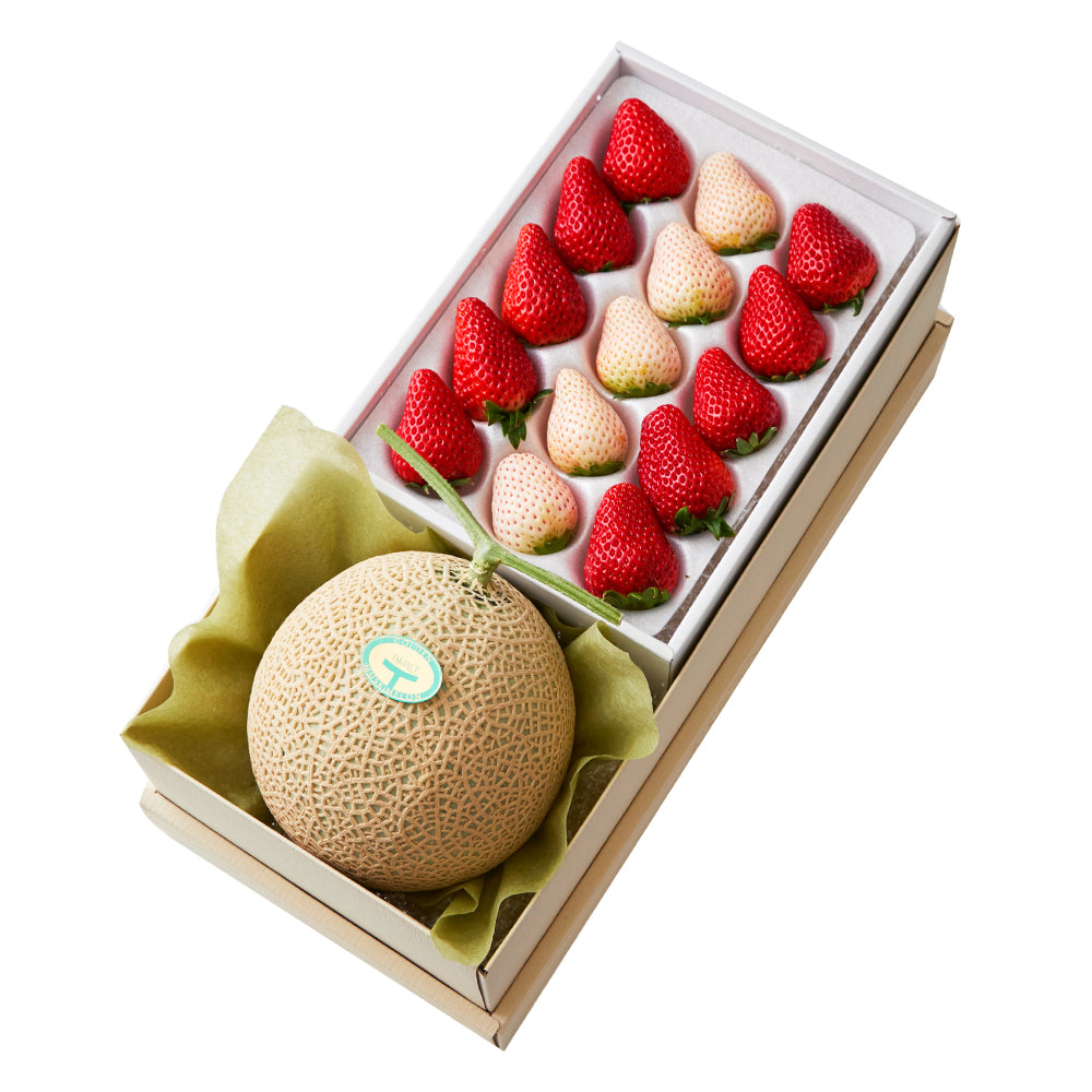 | 内容量 | マスクメロン(静岡県産)×1、苺10粒(静岡県、佐賀県、栃木県、熊本県、千葉県、長崎県、茨城県または福岡県産)、初恋の香り5粒(静岡県、和歌山県、鹿児島県または佐賀県産)×各1 |