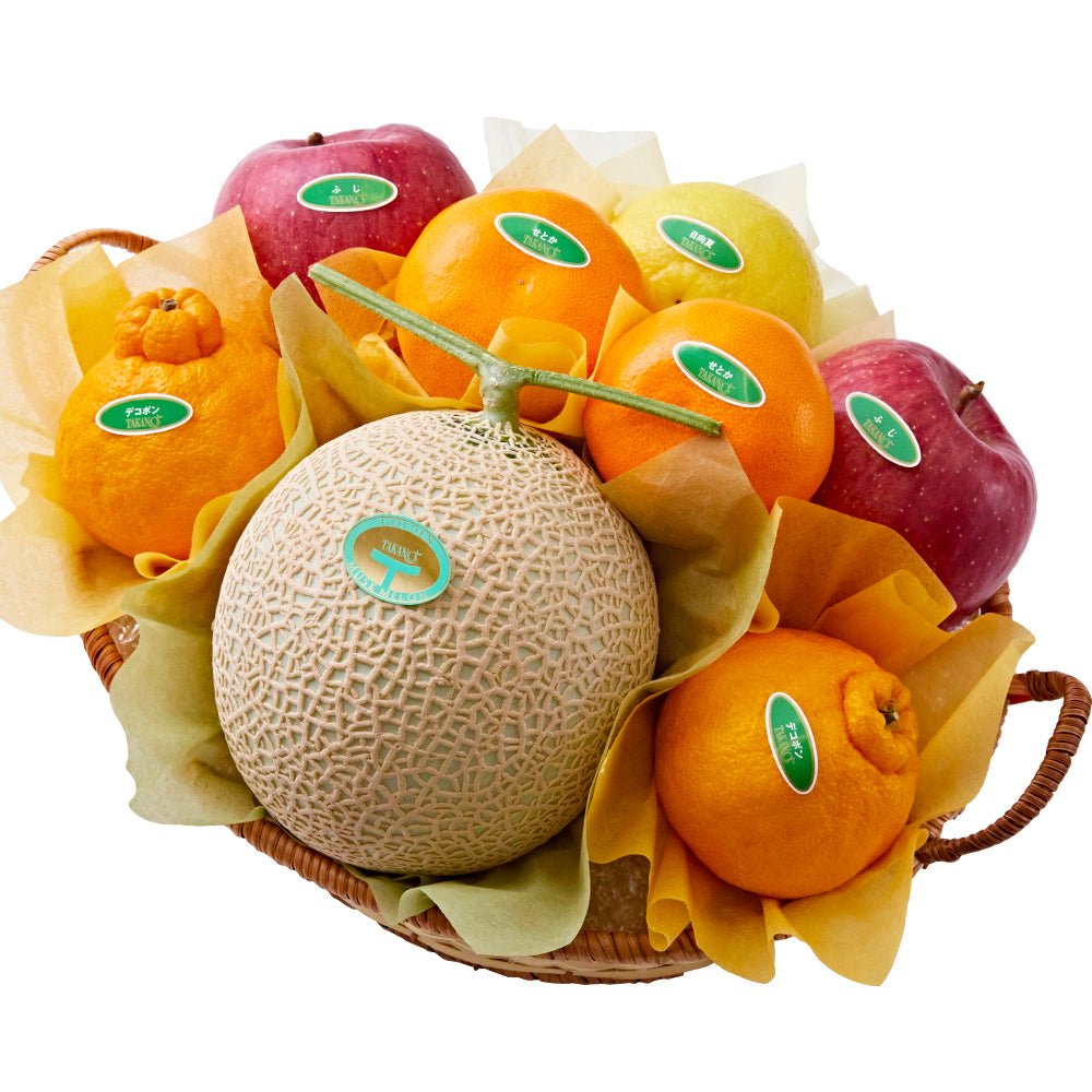 | 内容量 | マスクメロン(静岡県産)×1、デコポン(熊本県または佐賀県産)、せとか(愛媛県または佐賀県産)、ふじ(青森県または長野県産)×各2、日向夏(宮崎県産)×1(篭入) |