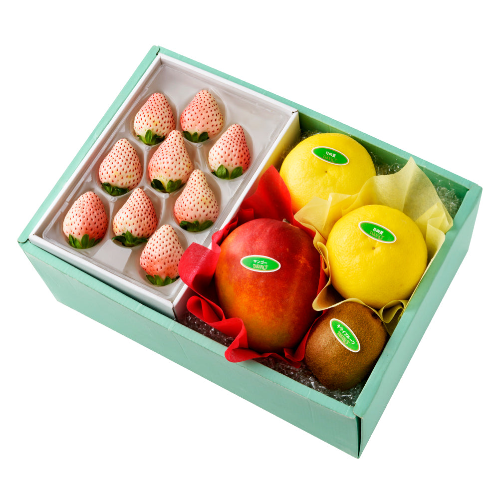 | 内容量 | 初恋の香り9粒入(静岡県、和歌山県、鹿児島県または佐賀県産)×1、日向夏(宮崎県産)×2、マンゴー(ペルー、ブラジルまたはオーストラリア産)、キウイフルーツ(ニュージーランド、愛媛県、和歌山県、山梨県または福岡県産) ×各1 |