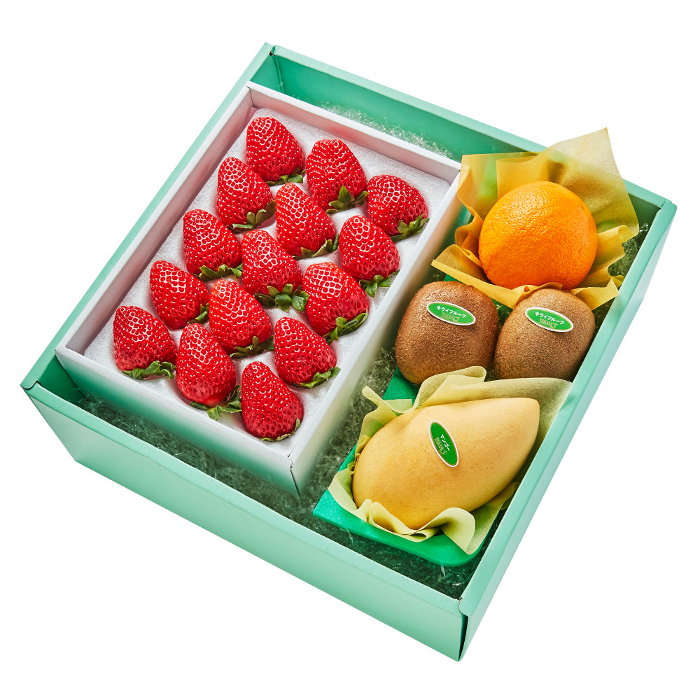 | 内容量 | まりひめいちご15粒(和歌山県産)、タイマンゴー(タイ産)、オレンジ(アメリカまたはオーストラリア産)×各1、キウイフルーツ(ニュージーランド、愛媛県または和歌山県産)×2 |