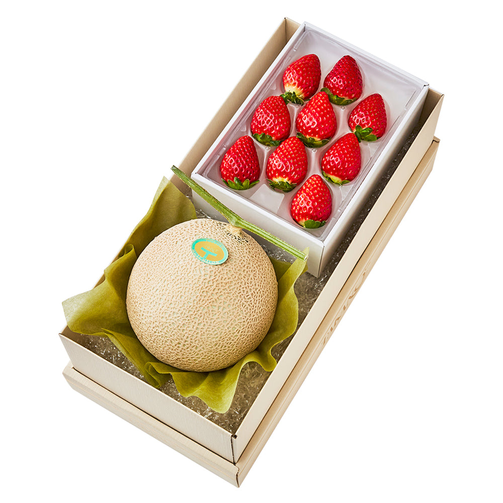 | 内容量 | マスクメロン(静岡県産)×1、まりひめいちご9粒 (和歌山県産)×1 |