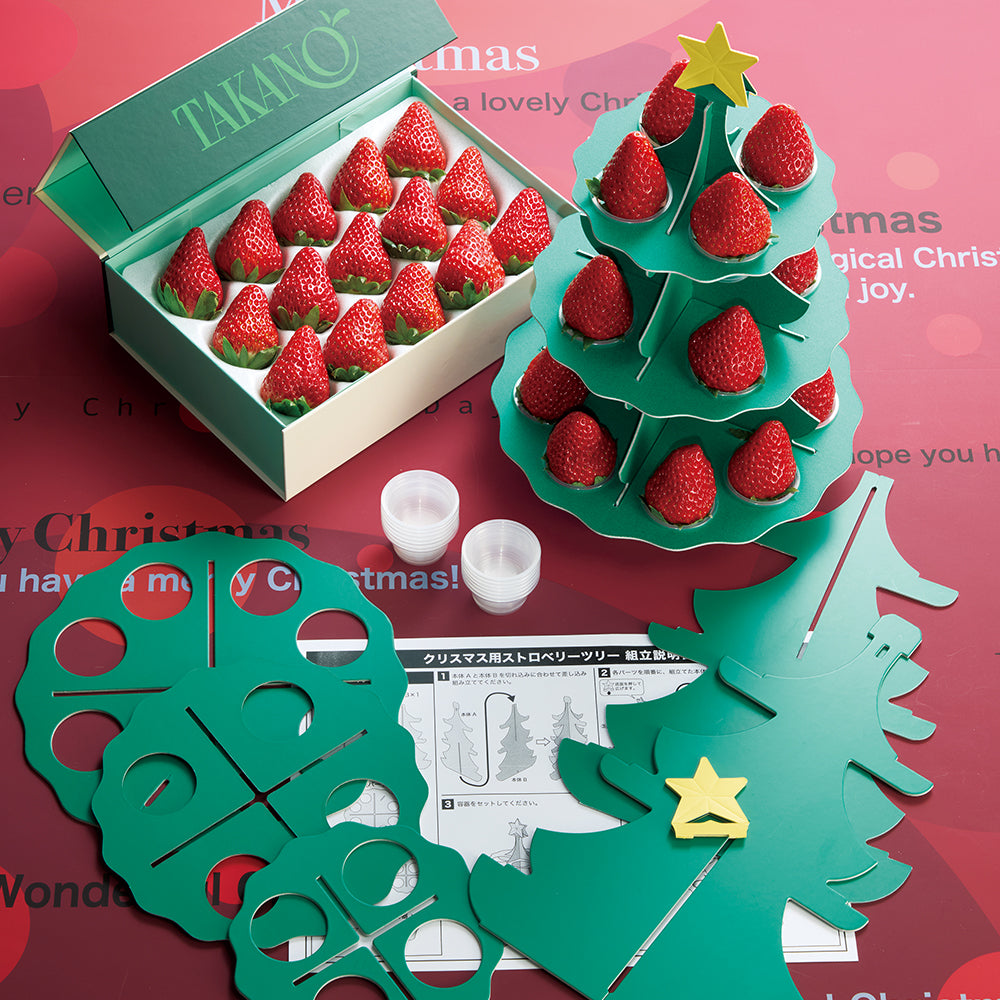 | 内容量 | 苺15粒(静岡県、佐賀県、栃木県、熊本県、千葉県、長崎県、茨城県または福岡県産)、クリスマスツリー(ペーパークラフト)×各1 |