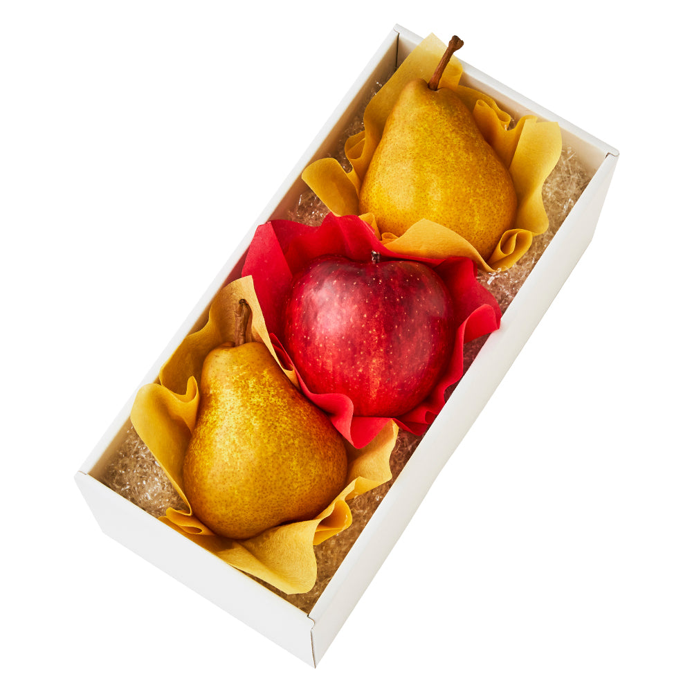 内容量 | 洋梨(山形県、長野県、青森県または宮城県産)×2、りんご(山形県、長野県、秋田県、青森県または岩手県産)×1 | ||