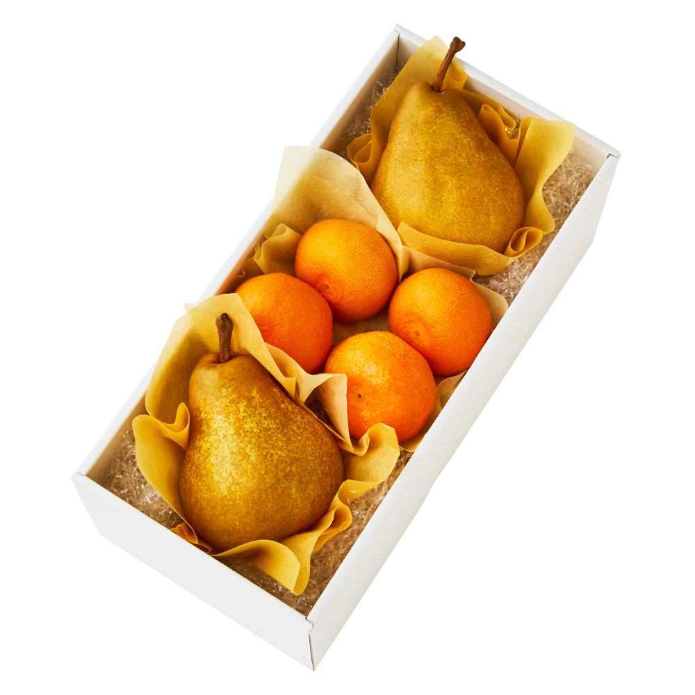 | 内容量 | 洋梨(山形県、長野県、青森県または宮城県産)×2、みかん(愛媛県、佐賀県、熊本県、和歌山県または長崎県産)×4 | ||
