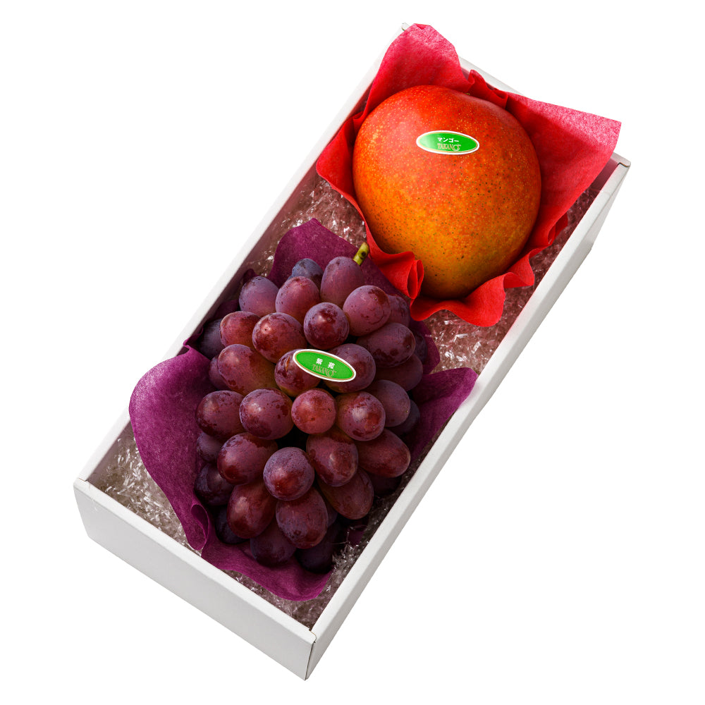 | 内容量 | マンゴー(ブラジル、ペルーまたはオーストラリア産)、紫苑ぶどう 約600g前後(岡山県産)×各1 |