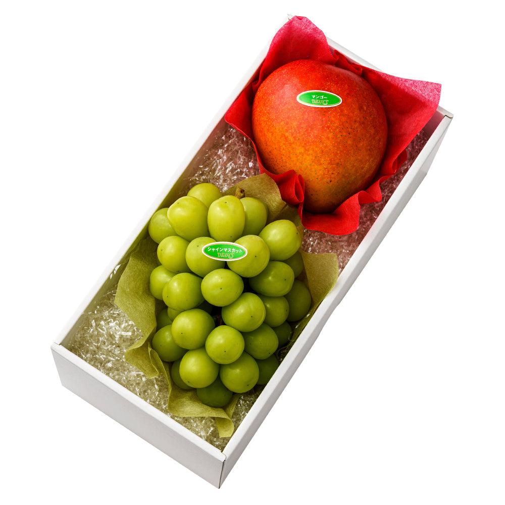 | 内容量 | マンゴー(ブラジル、ペルーまたはオーストラリア産)、シャインマスカット 約600g前後(長野県産)×各1 |