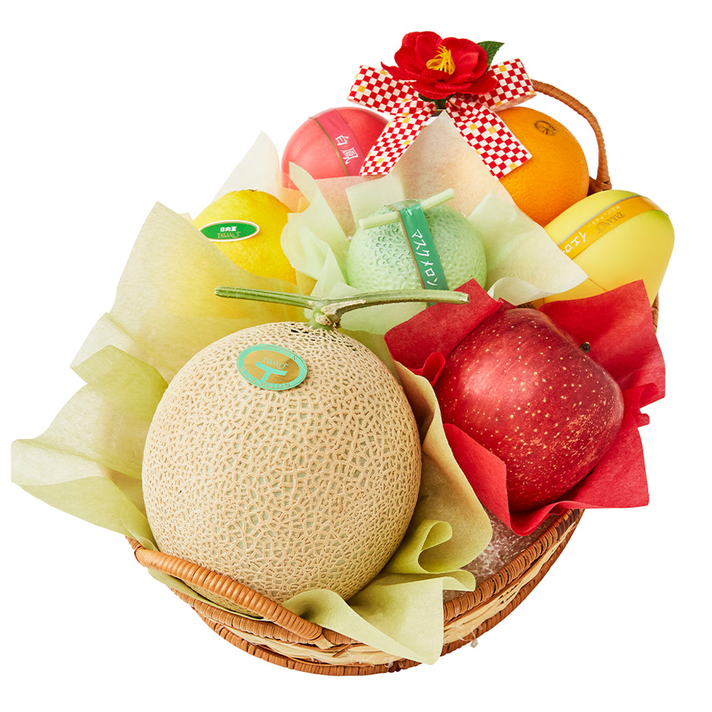 | 内容量 | マスクメロン(静岡県産)、りんご(青森県、山形県、長野県または岩手県産)、日向夏(宮崎県産)、オレンジ(アメリカまたはオーストラリア産)×各1、果実ピュアゼリー(マスクメロン、イエローマンゴー、白鳳×各1)、椿クリップ(造花)×1(篭入) |