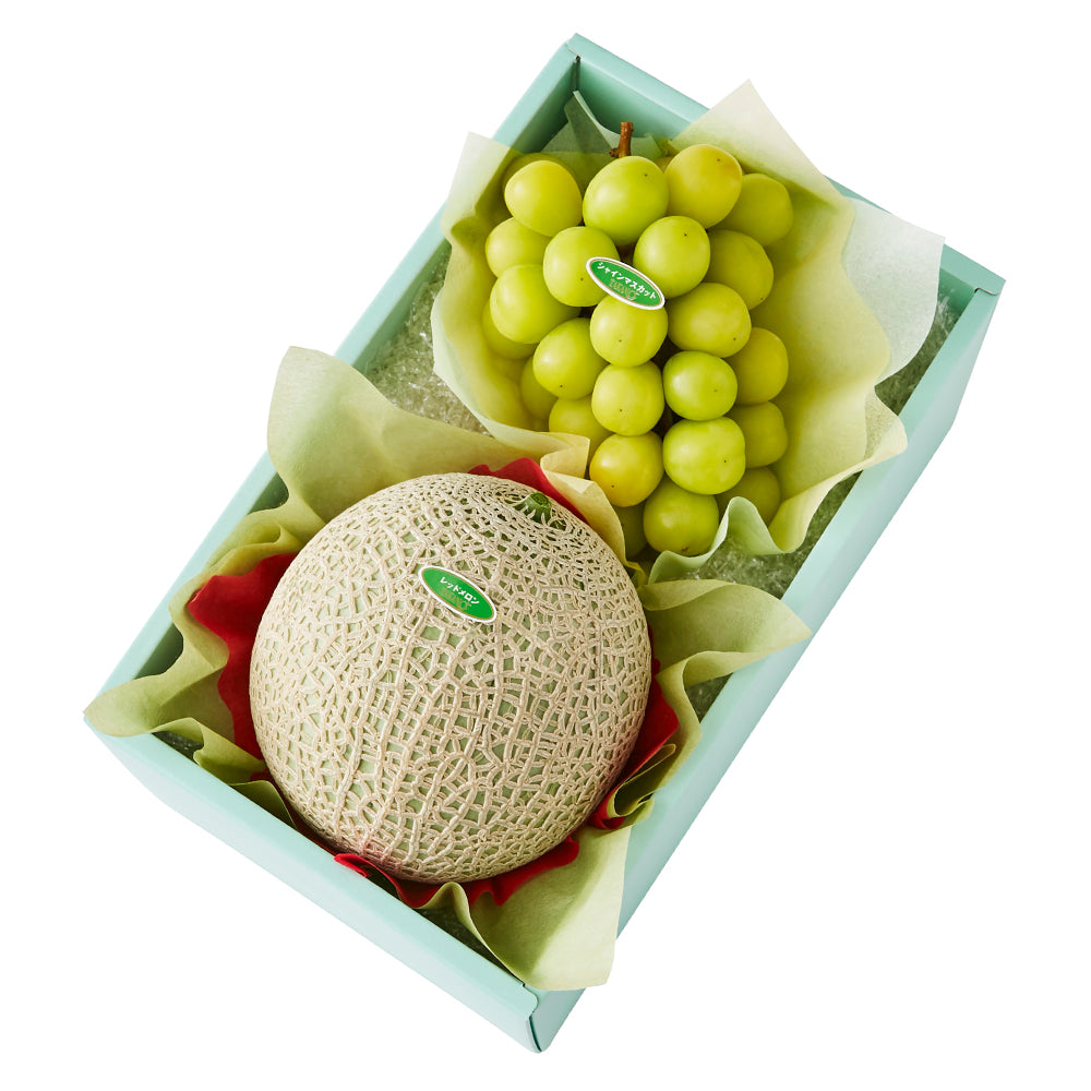 | 内容量 | レッドメロン(熊本県、長崎県、宮崎県または高知県産)、シャインマスカット 約600g前後(長野県産)×各1 |
