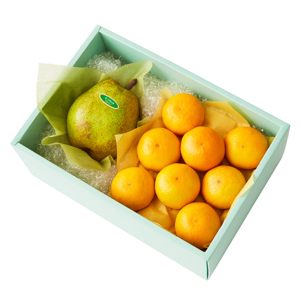 | 内容量 | 大玉ラ・フランス(山形県産)×1、みかん(佐賀県、愛媛県、熊本県または和歌山県産)×8 |