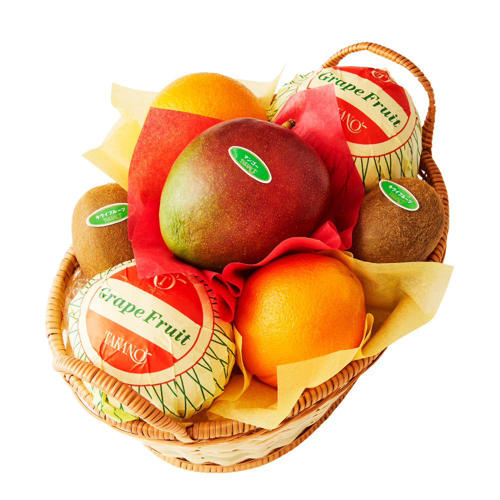 | 内容量 | マンゴー(ブラジル、ペルーまたはオーストラリア産)×1、キウイフルーツ(ニュージーランド、愛媛県または和歌山県産)、グレープフルーツ(アメリカ、メキシコまたはオーストラリア産)、オレンジ(アメリカまたはオーストラリア産)×各2(篭入) |