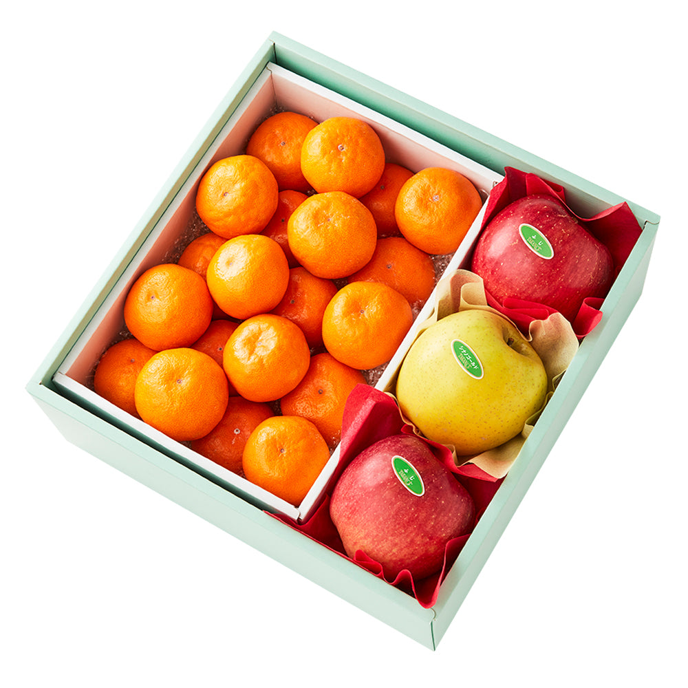内容量葵クラブみかん(和歌山県産)×20、ふじ(青森県、山形県、長野県または岩手県産)×2、シナノゴールド(長野県、岩手県または青森県産)×1