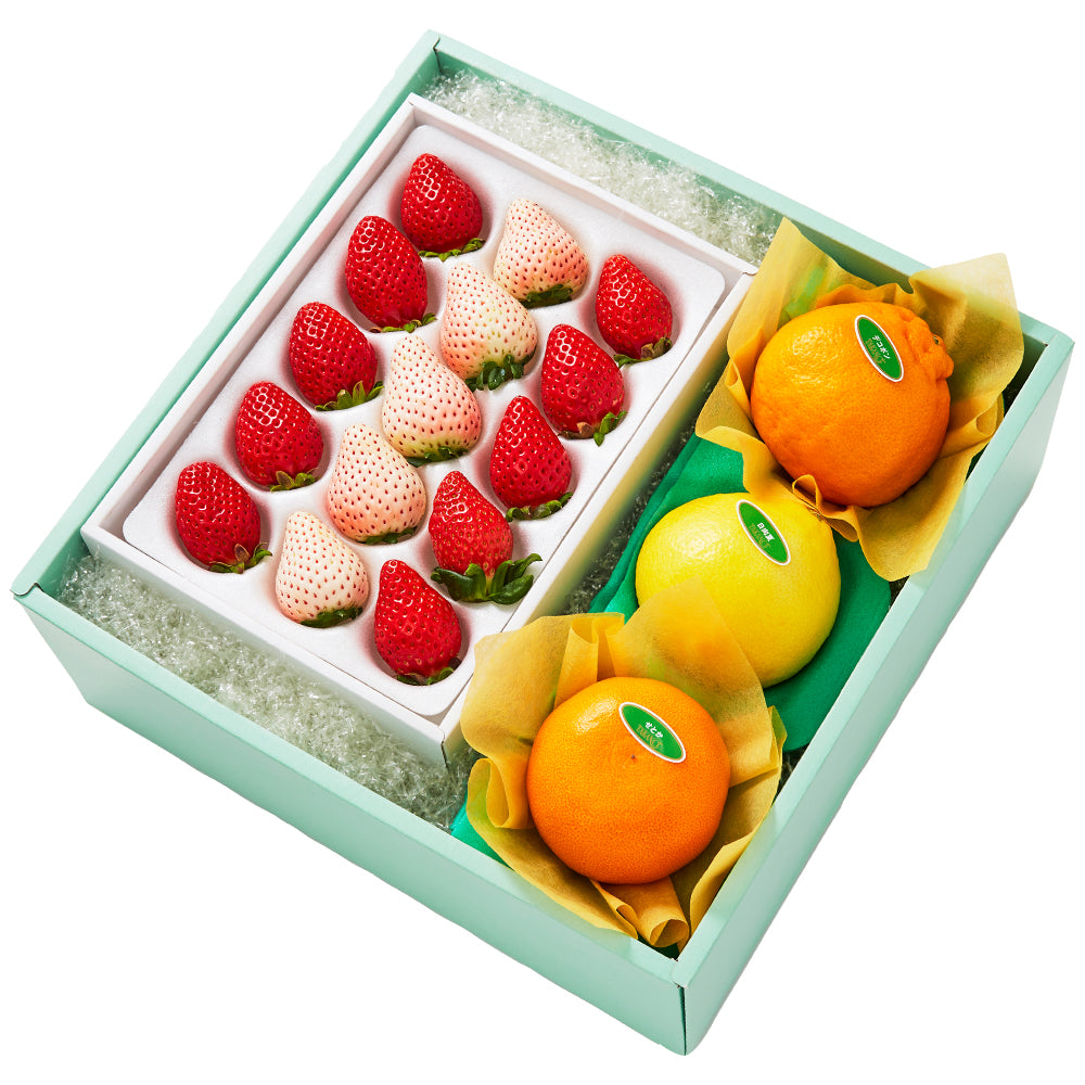 | 内容量 | べにたま苺10粒(埼玉県産)、初恋の香り5粒(静岡県産または和歌山県産)×1、せとか(佐賀県、愛媛県または愛知県産)、デコポン(佐賀県、熊本県または鹿児島県産)、日向夏(宮崎県産)×各1 |