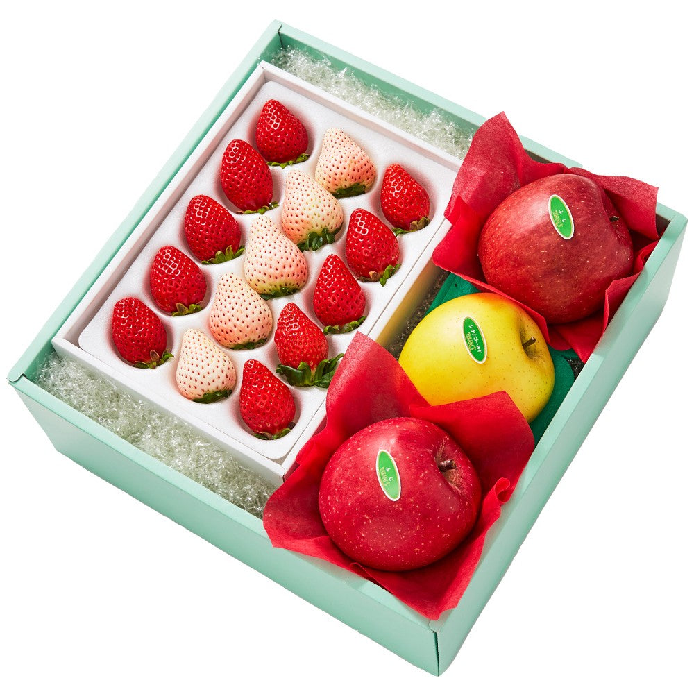 | 内容量 | べにたま苺10粒(埼玉県産)、初恋の香り5粒(静岡県産または和歌山県産)×1、ふじ(青森県または長野県産)×2、シナノゴールド(青森県または長野県産)×1 |