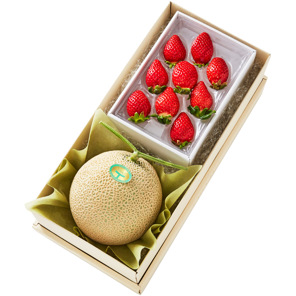 | 内容量 | マスクメロン(静岡県産)×1、べにたま苺9粒(埼玉県産)×1 |