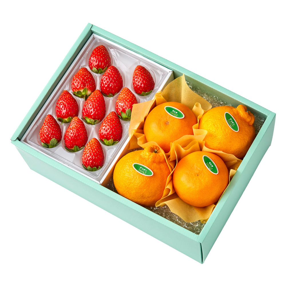 | 内容量 | 古都姫 11粒(奈良県産)×1、デコポン(熊本県または佐賀県産)、せとか(愛媛県または佐賀県産)×各2 |