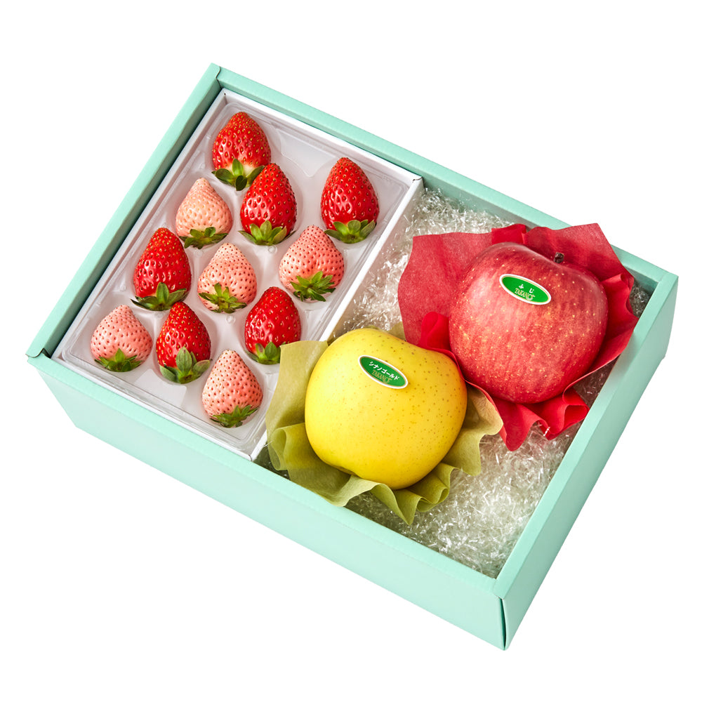 ■古都姫は奈良県生まれの古都華と珠姫を親として育成された苺です。香りが強く、糖度が比較的高めで酸度は古都華ほどではない濃厚な味わいです。果皮はしっかりとしていて暖春期の3~4月でも美味しく召し上がれます。■コットンベリーは奈良県生まれの苺です。とても香りが良くうっすらとピンク色に色づきます。収穫量が少ない希少品種です。■ふじは国内で最も多く栽培されている品種で、「国光」と「デリシャス」から育成され、昭和37年に品種登録されました。甘みが強く、酸味が少ない、しっかりとした果肉で果汁が豊富なりんごです。■シナノゴールドの親は「ゴールデンデリシャス×千秋」です。果皮は黄色っぽく甘みも強く適度な酸味もある濃厚な味わいです。また果汁も多くサクサクとした食感も人気です。 りんごはアダムとイブにも登場する歴史の古い果物です。日本では明治時代から本格的な栽培がはじまりました。■季節のご挨拶ギフトなど幅広くご利用いただいております。特に「ご出産」「ご婚礼」などの「御祝」「内祝」ギフトとしておすすめいたします。■こちらの商品は、他の商品との同梱配送は出来かねます。