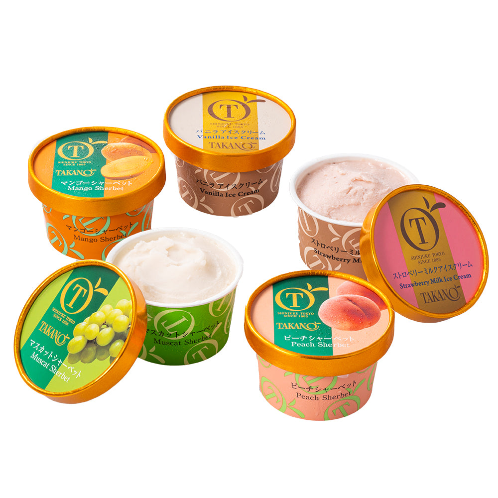 | 内容量 | アイスクリーム100ml(バニラ、ストロベリーミルク×各1)、シャーベット100ml(マスカット、ピーチ、マンゴー×各1) |