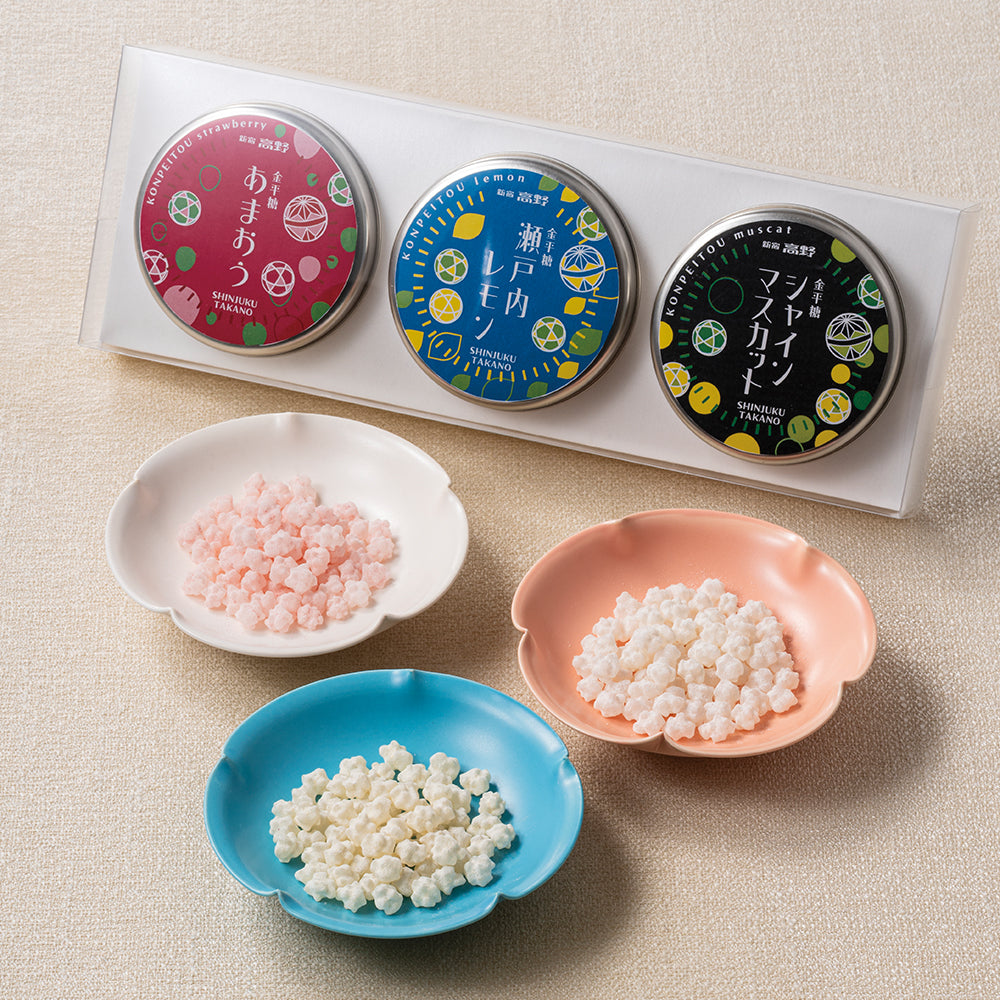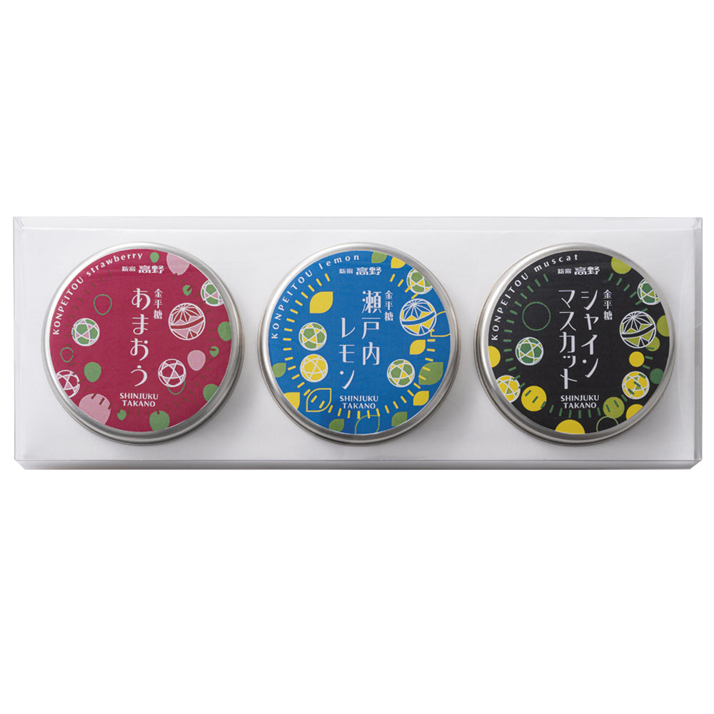 新宿高野 フルーツ金平糖3入(シャインマスカット・あまおう・瀬戸内レモン)