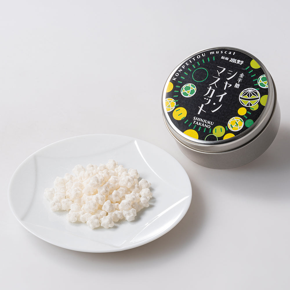 シャリッとした食感と素朴な甘さが魅力の金平糖に、フルーツそのものの美味しさを合わせました。シャインマスカット、あまおうそれぞれのパウダーを使用した金平糖。