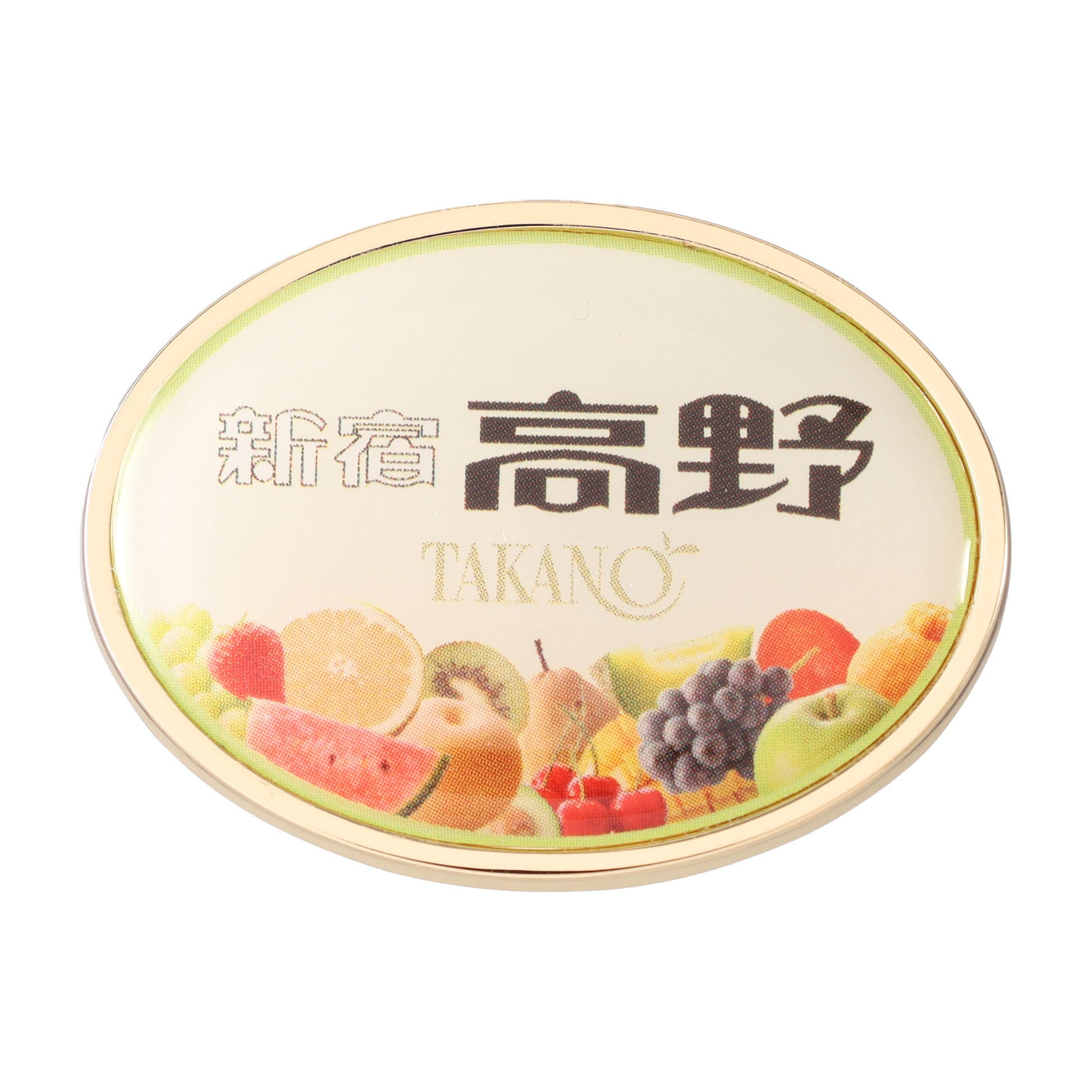フルーツ専門店「新宿高野」のオリジナルデザインのピンズです。「新宿高野」の文字デザインとフルーツが描かれたデザイン。ファッションのワンポイントにもおすすめのアイテムです。