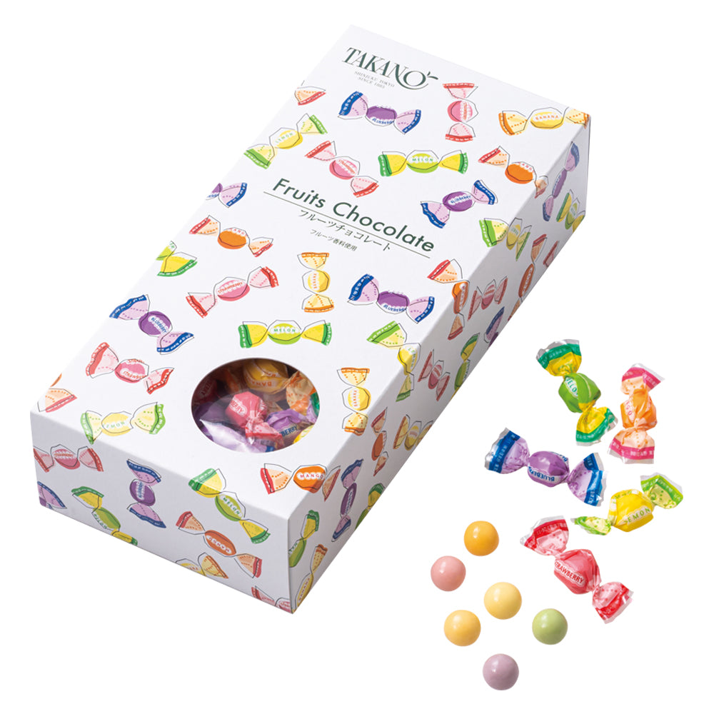 ブルーベリー、ストロベリー、レモン、マンゴー、メロン、バナナの6種類の味が楽しめるフルーツチョコレートです。