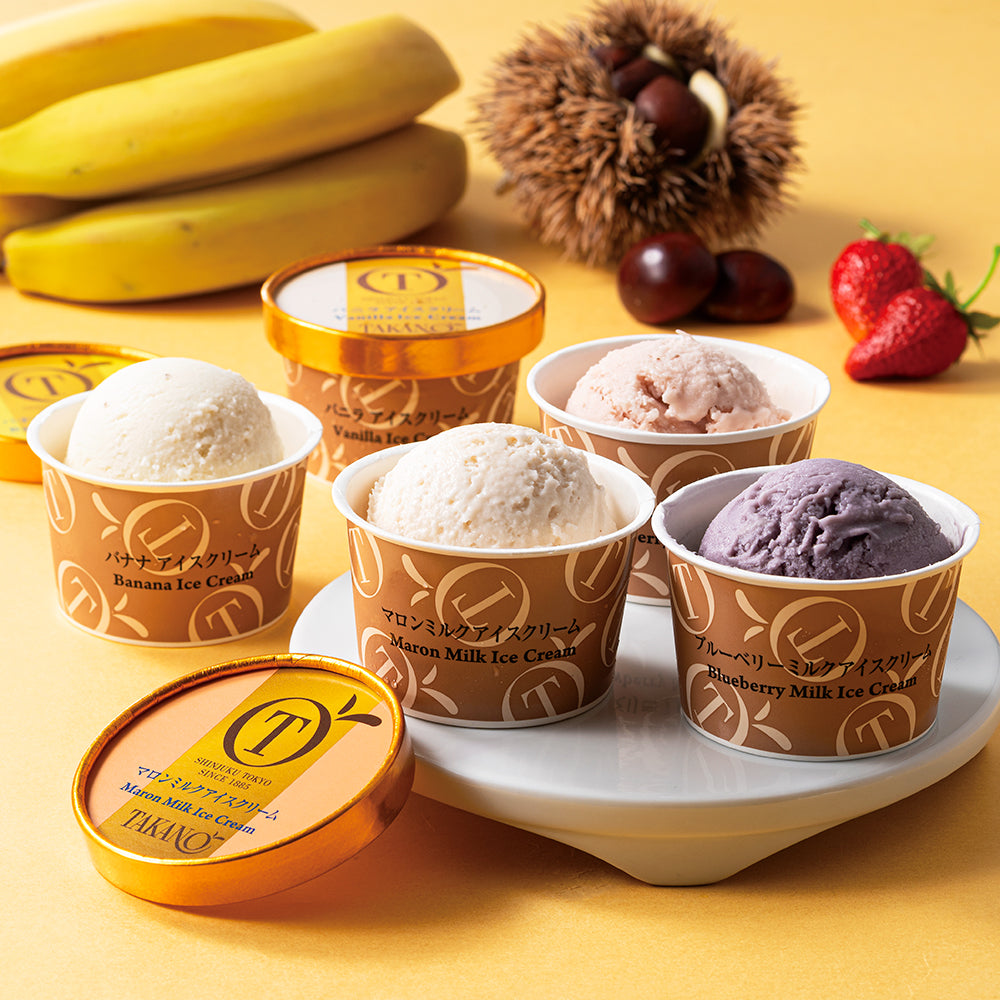 | 内容量 | アイスクリーム100ml(バニラ、バナナ、ストロベリーミルク、ブルーベリーミルク、マロンミルク×各1) | ||
