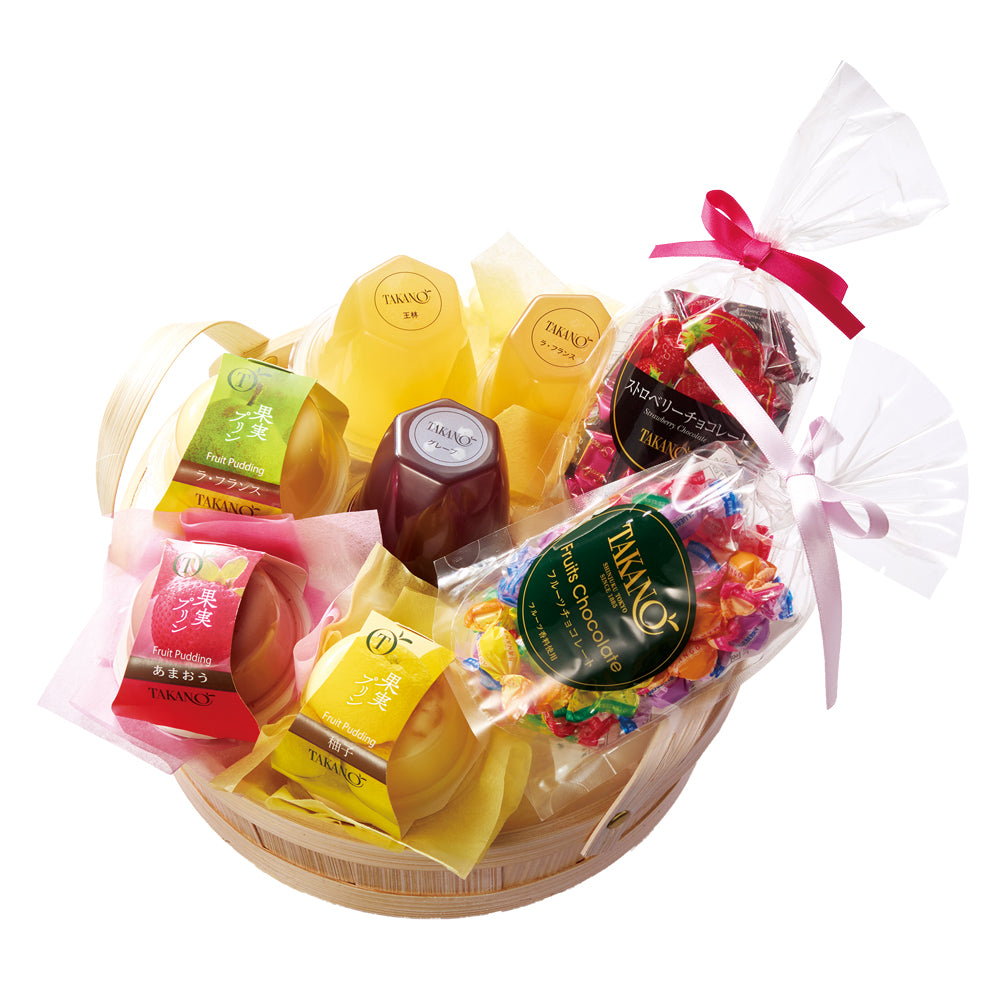 | 原材料 | ■フルーツチョコレートSPリボン:砂糖(オーストラリア製造)、ココアバター、全粉乳、粉糖、植物油脂、乳糖、水あめ、いちごパウダー、バナナフレーク、ブルーベリーパウダー、レモンパウダー(デキストリン、レモン濃縮果汁)、メロンパウダー(デキストリン、メロン濃縮果汁)、マンゴーパウダー(デキストリン、マンゴーピューレ)/乳化剤(大豆由来)、光沢剤、酸味料、着色料(紅花色素、クチナシ、野菜色素、カロチノイド、ウコン、紅麹)、香料■ストロベリーチョコレートSPリボン:砂糖(外国製造)、ココアバター、植物油脂、全粉乳、脱脂粉乳、いちご加工品/乳化剤(大豆由来)、着色料(野菜色素、ベリー色素)、香料、酸味料■果実プリン●あまおう:いちごピューレ(国内製造)、砂糖、乳等を主要原料とする食品(卵を含む)/ゲル化剤(加工デンプン、増粘多糖類、CMC)、グリシン、pH調整剤、酸味料、着色料(紅麹、野菜色素)、乳化剤、香料●ラ・フランス:洋なしシラップ漬け(国内製造)、砂糖、乳等を主要原料とする食品(卵を含む)、洋なし濃縮果汁/ゲル化剤(加工デンプン、増粘多糖類、CMC)、グリシン、pH調整剤、酸味料、酸化防止剤(V.C)、乳化剤、香料、着色料(紅花色素、クチナシ、カロチン●柚子:砂糖(国内製造)、乳等を主要原料とする食品(卵を含む)、ゆず果汁、ゆず皮加工品(ゆず皮、砂糖、還元水あめ)/ゲル化剤(加工デンプン、増粘多糖類、CMC)、グリシン、pH調整剤、酸化防止剤(V.C)、乳化剤、香料、酸味料、紅花色素)■果実ゼリー●ラ・フランス:洋なしシラップ漬け(国内製造)、砂糖、洋なし濃縮果汁、洋酒/ゲル化剤(増粘多糖類)、酸味料、酸化防止剤(V.C)、香料●グレープ:ぶどうシラップ漬け(中国製造)、砂糖、ぶどう濃縮果汁、洋酒/ゲル化剤(増粘多糖類)、酸味料、香料、酸化防止剤(V.C)、pH調整剤、乳酸Ca●王林:りんごシラップ漬け(国内製造)、砂糖、りんご濃縮果汁、洋酒/ゲル化剤(増粘多糖類)、酸味料、酸化防止剤(V.C)、香料 |