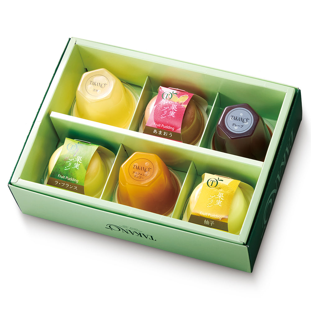 | 内容量 | 果実ゼリー(グレープ、王林、アルフォンソマンゴー×各1)、果実プリン(あまおう、柚子、ラ・フランス×各1) |