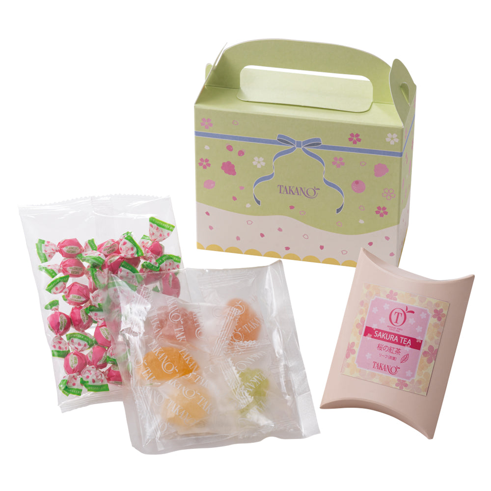 | 内容量 | 桜チョコレート 小袋40g(個包装紙込み)、フルーツジェリー5入、桜の紅茶20g箱×各1 |