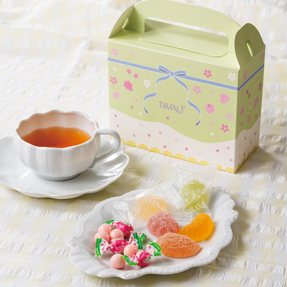 桜チョコレートとジェリー、紅茶を詰め合わせました。■桜チョコレート:ホワイトチョコレートベースに桜の葉のパウダーを練り込みました。桜の香りが春を感じさせる上品な味わいのチョコレートです。■フルーツジェリー:瀬戸内レモン、マスカット、温州みかん、とちおとめ、ぶどうの5種類の味が楽しめる、国産果汁とピューレで仕立て、フルーツをかたどった一口サイズのジェリー。
